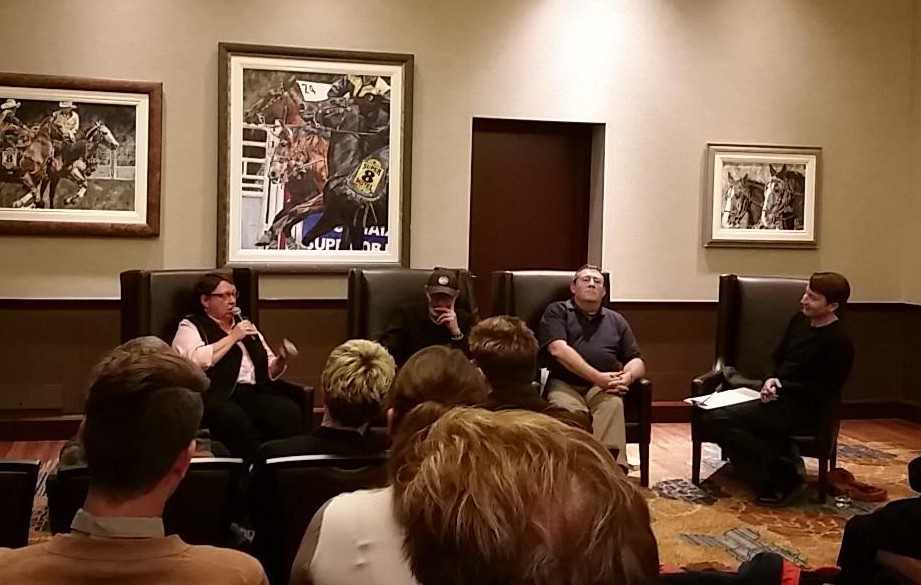 Pride Founders (L to R): Nancy Miller, Stephen Lock and Richard Gregory, and Moderator: Kevin Allen. Photo credit: Twitter @MastersMatt