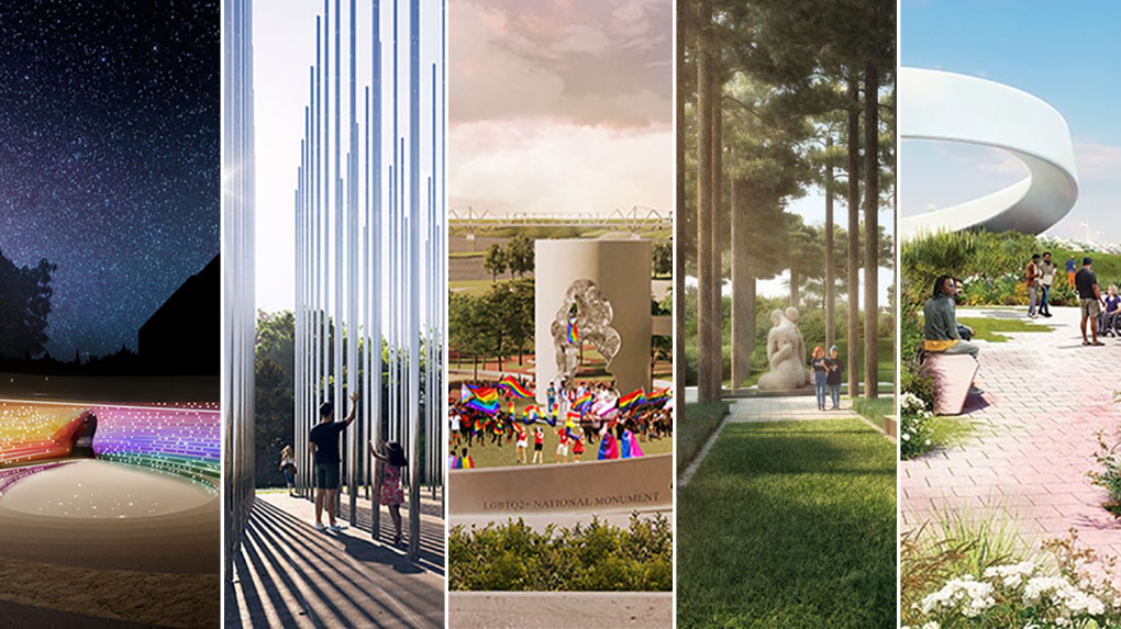 A collage of conceptual designs for the proposed LGBTQ2+ National Monument