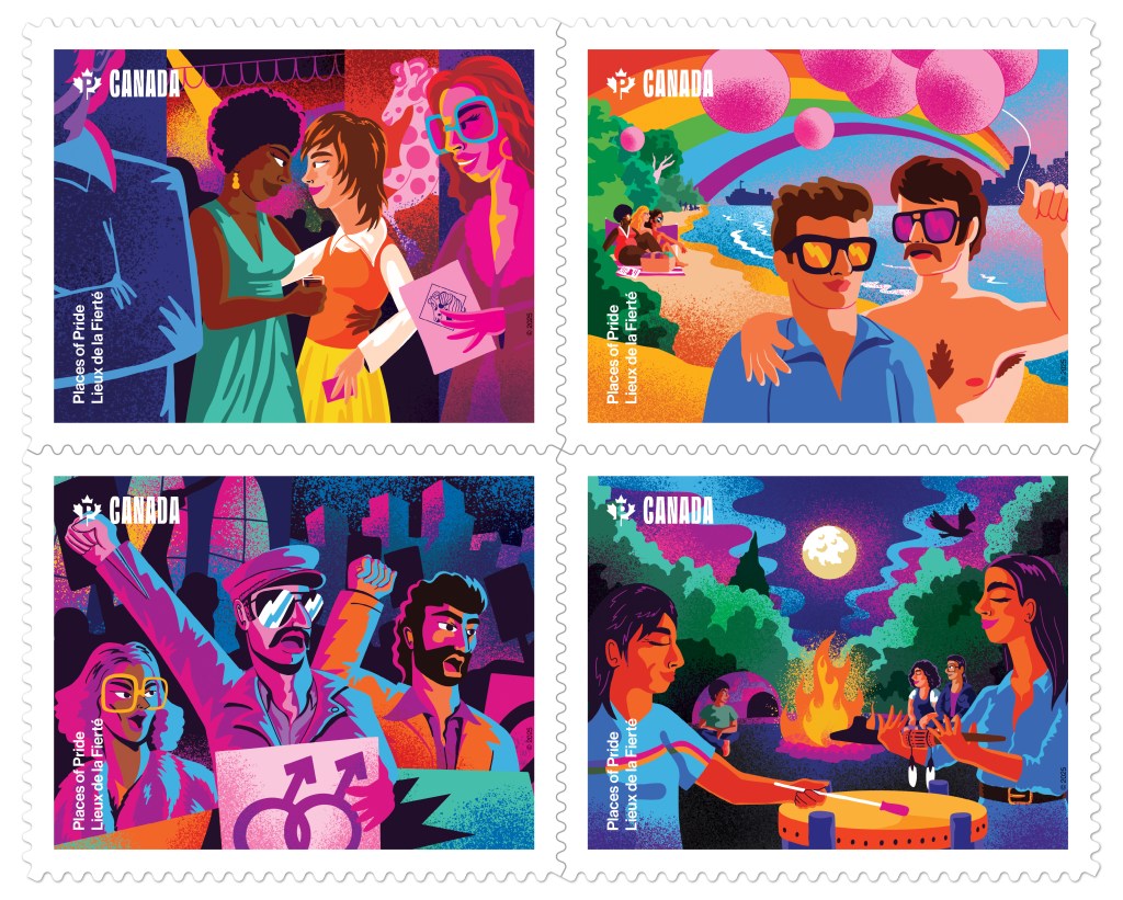 The fourth and final stamp in the series features the 3rd North American Native Gay & Lesbian Gathering. A mural will be installed at the Museum of Human Rights in Winnipeg.