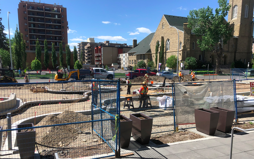 The Lois Szabo Commons is under construction and will be completed later this summer at the corner of 9 St and 16 Ave SW in the Beltline.