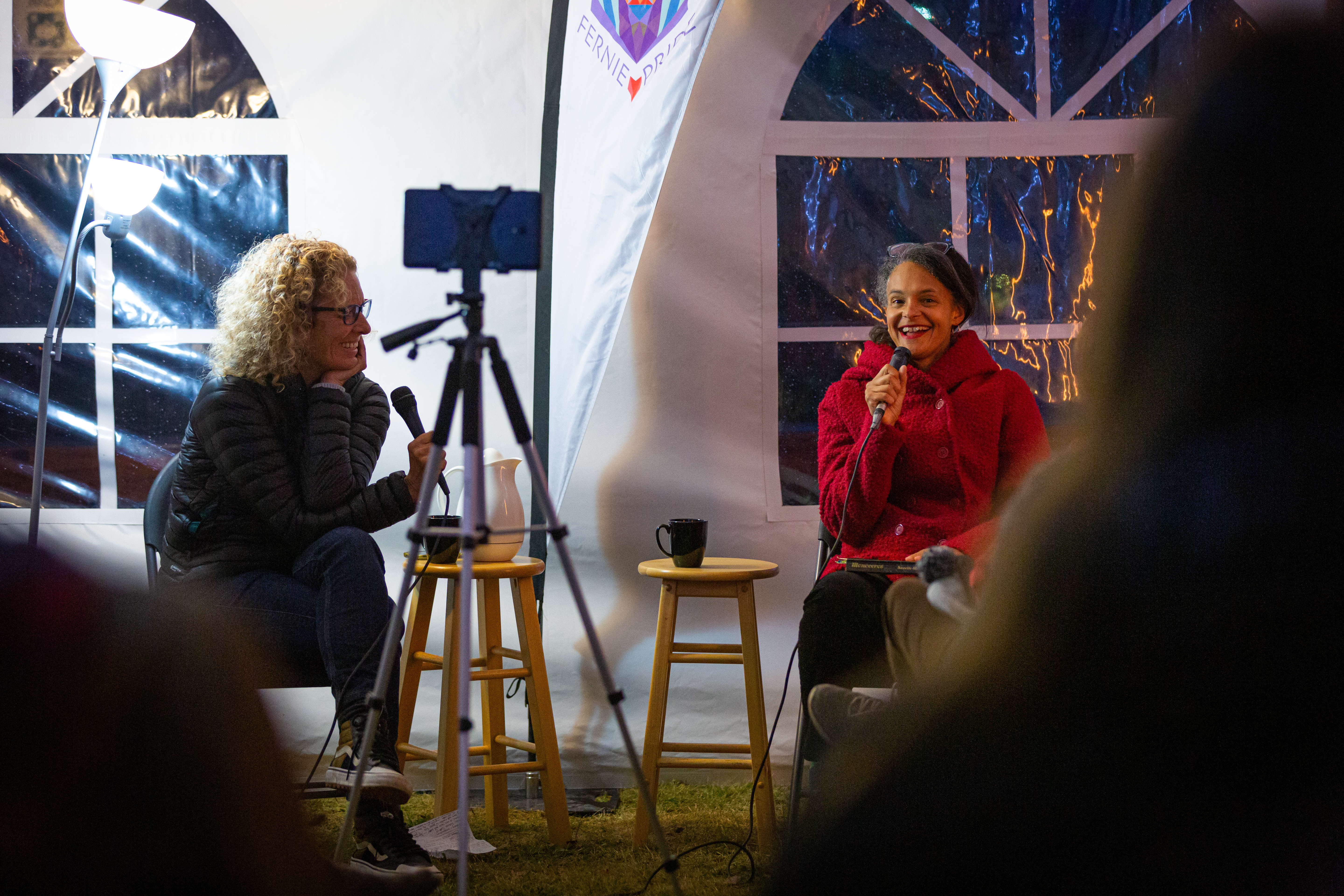 Our literary event host, author Angie Abdou, and Suzette were good-humoured about the hot drinks, warm clothes and torch heaters that made the event possible. Despite the obstacles, we were all so grateful to be together after months of being home alone. Thank you, Suzette, for showing up for the queer community the way you do. We’re such big fans and proud of your success—congratulations!